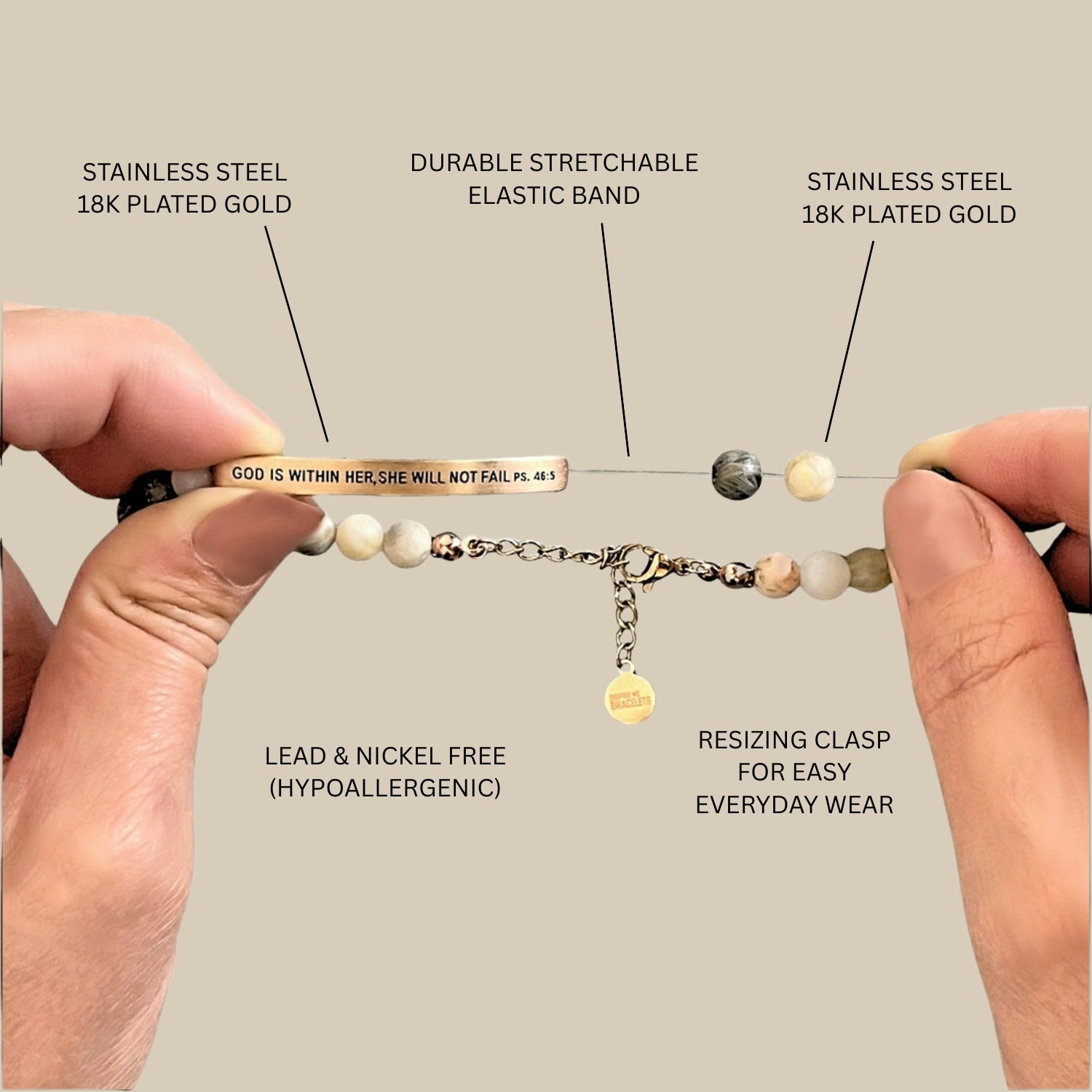 I love this beautiful bracelet so much! Great quality and fits great. And there’s nothing better than having a note of encouragement on my wrist to see all day. 🤍🤍🤍